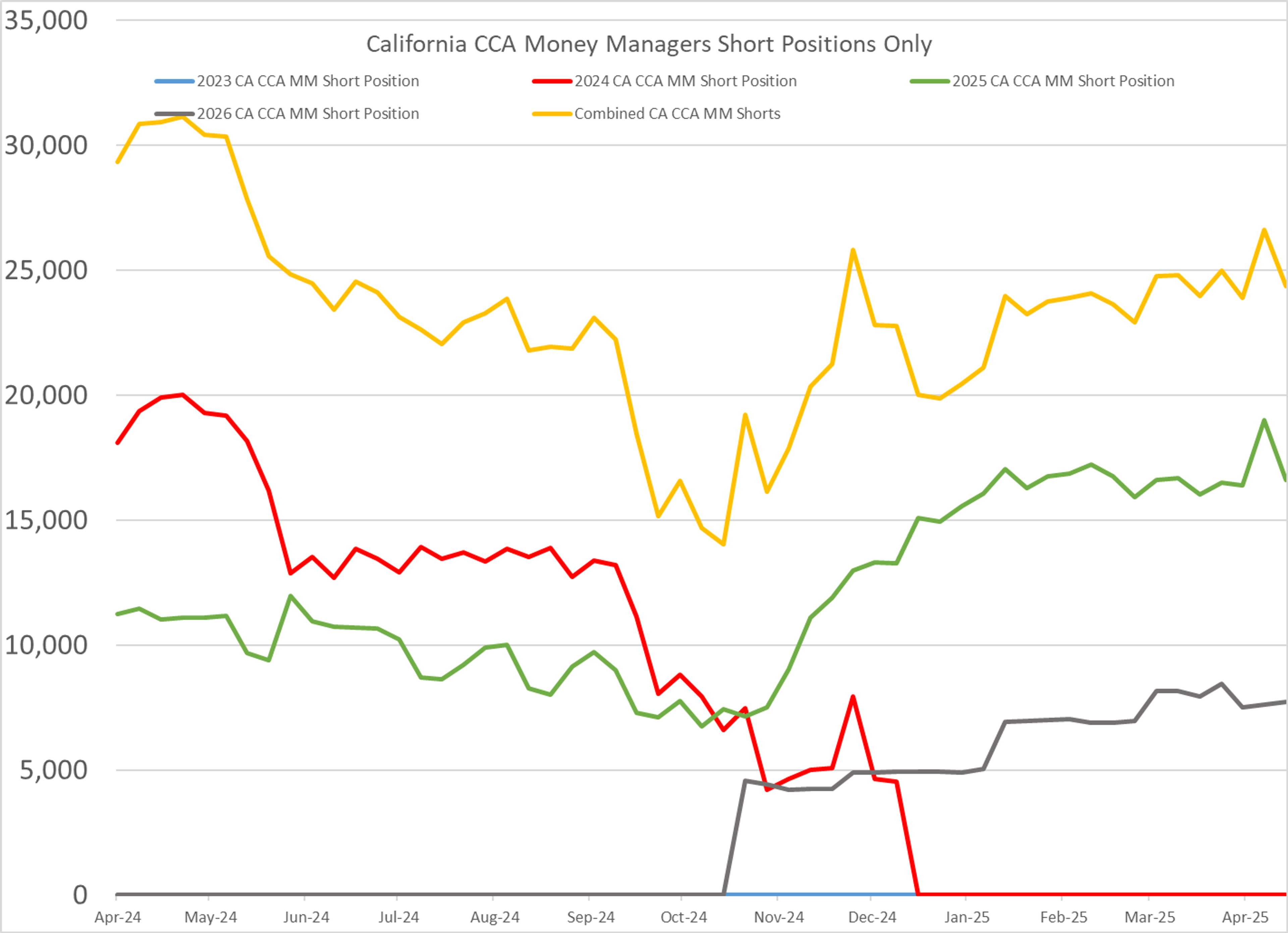 Money managers continued to tack on long positions in D4 RINs last week, a trend that has, on the charts, appeared to be a straight line up since mid-February. The change in speculative D6 positions was muted while the ‘smart money’ unwound some of their short positions in California’s CCA credits.