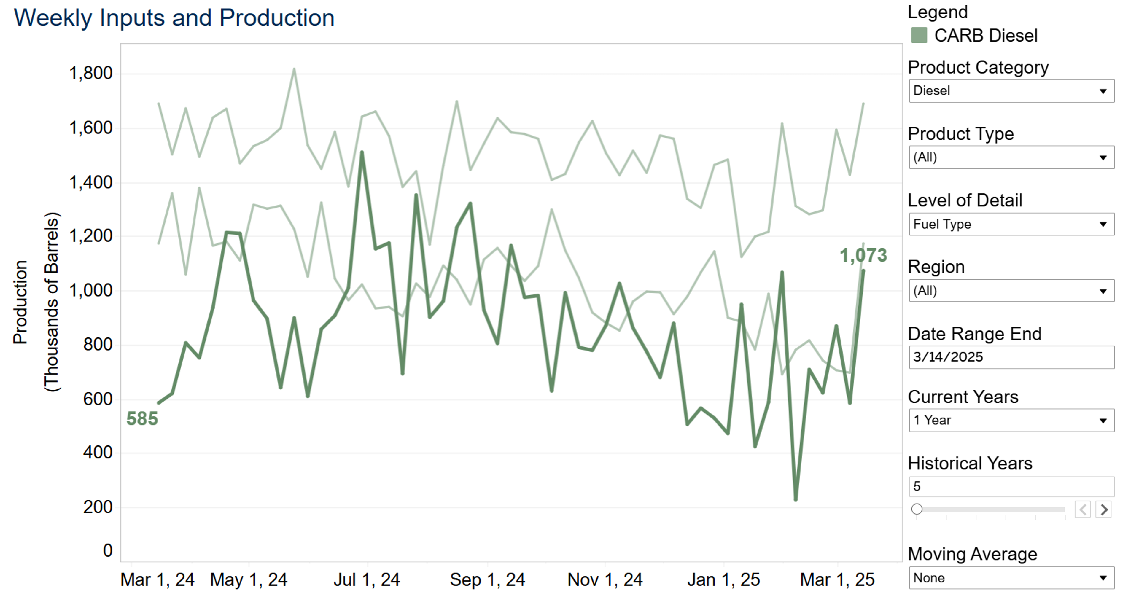 Diesel basis values have not joined in on the rally however as the state’s output of CARB diesel surged to a 6-month high last week as producers take advantage of the sudden tightness in supplies caused by the collapse in RD production and imports this year.