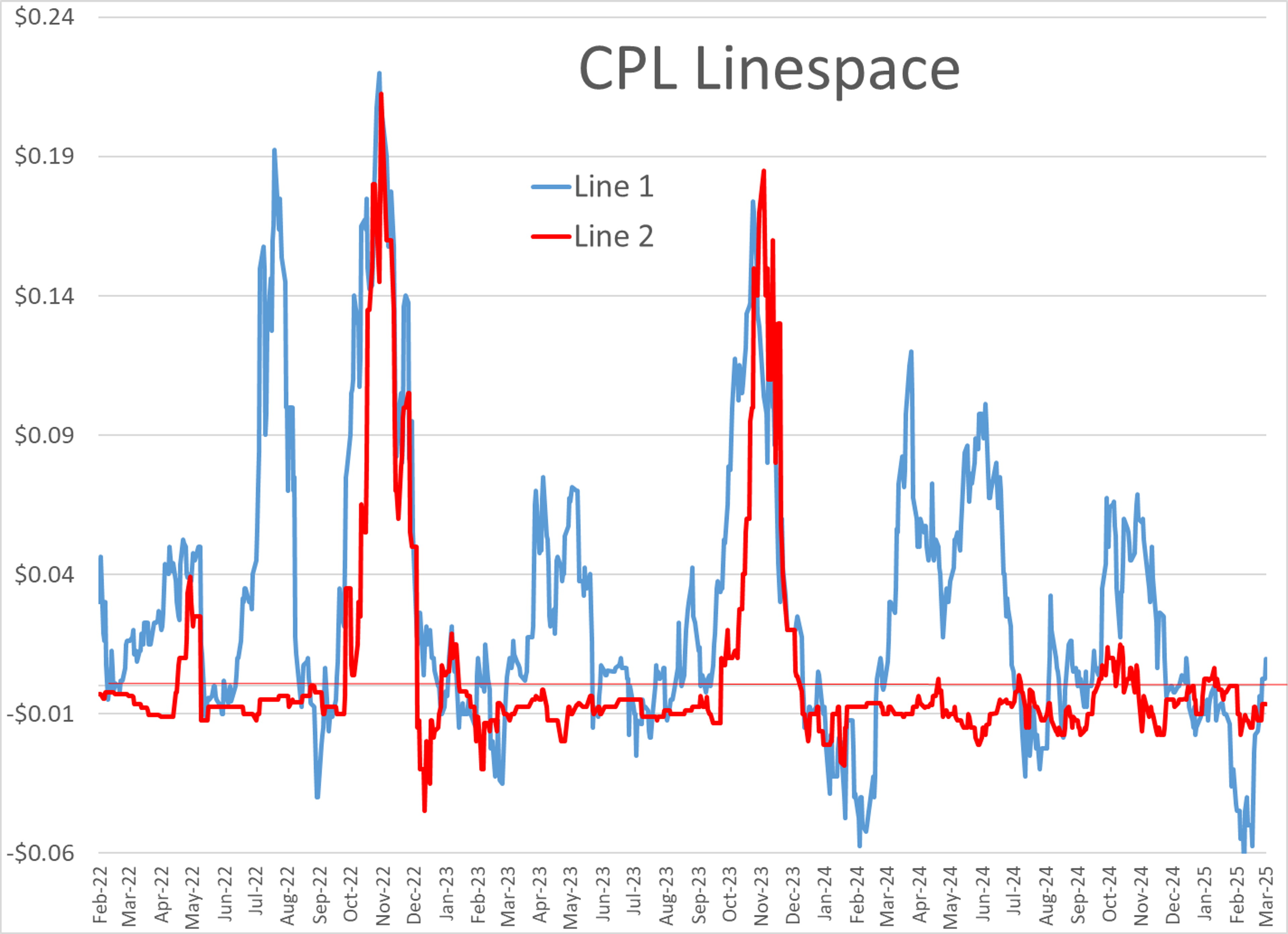 Values to lease space on Colonial’s main gasoline line jumped to a 3 month high this week after trading in negative territory for most of the year. In the past several years we’ve typically seen Line 1 values rally through the spring as shippers race to push barrels north during the spring RVP transition, but so far values are trailing year-ago levels by 1-2 cents.